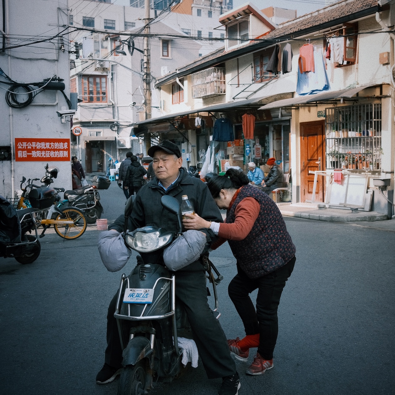 An old couple in demolition area, Shanghai
