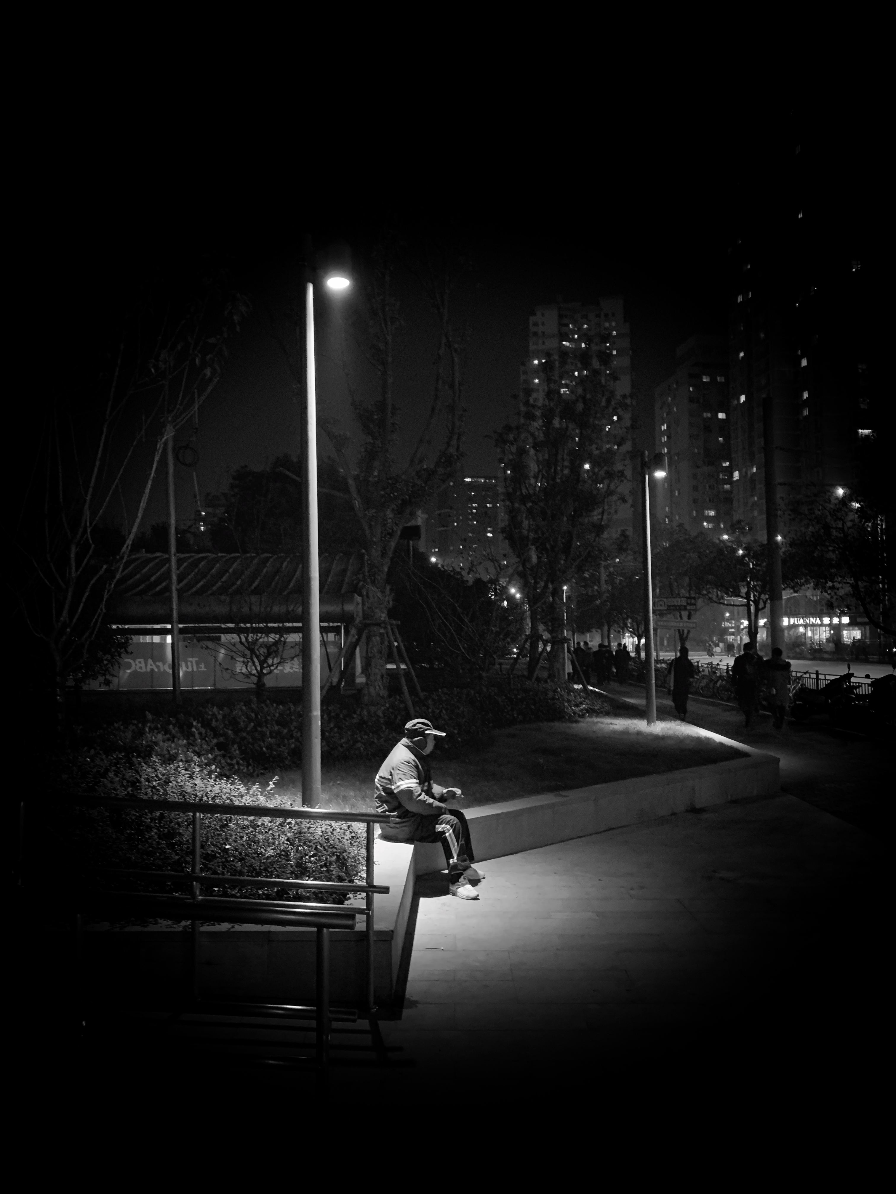 A sanitation worker under dim lights, Shanghai